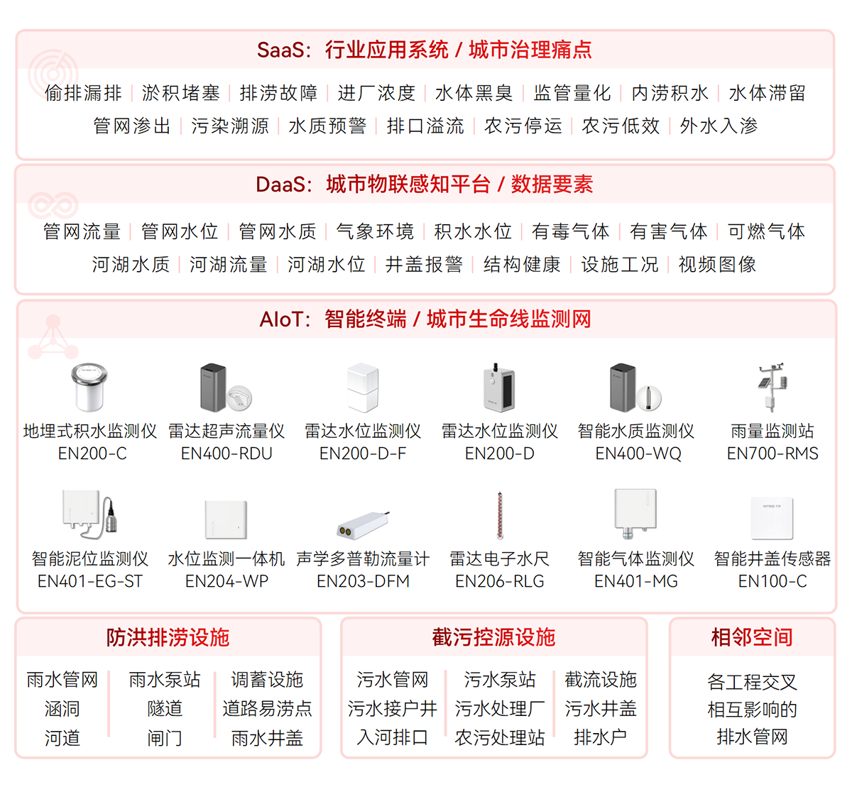 對排水設(shè)施(雨污水管網(wǎng)、窨井蓋、截流泵站、提升泵站、抽水泵站、農(nóng)村污水處理站、溢流井、排水井、污水處理廠、調(diào)蓄設(shè)施等)關(guān)鍵節(jié)點、易澇積水點,河湖水位、流速,管網(wǎng)液位、流速、水質(zhì),內(nèi)澇積水等指標(biāo)進(jìn)行實時數(shù)據(jù)監(jiān)測,形成設(shè)施完整、拓?fù)淝逦⑽恢脺?zhǔn)確的排水設(shè)施“一張圖”,為排水空間規(guī)劃、設(shè)計、排水設(shè)施改造提供決策支持。